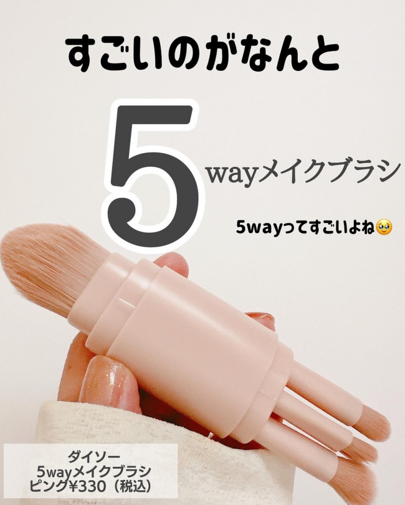 低価格なので手軽に試せるほか、コストを抑えながらコスメ用品を揃えられるのも嬉しいポイント。上の商品は330円で5つのブラシが使える驚きのアイテムです。粉含みも良く、使用感も◎。かさばらないので旅行シーンにもぴったりの仕様になっています。