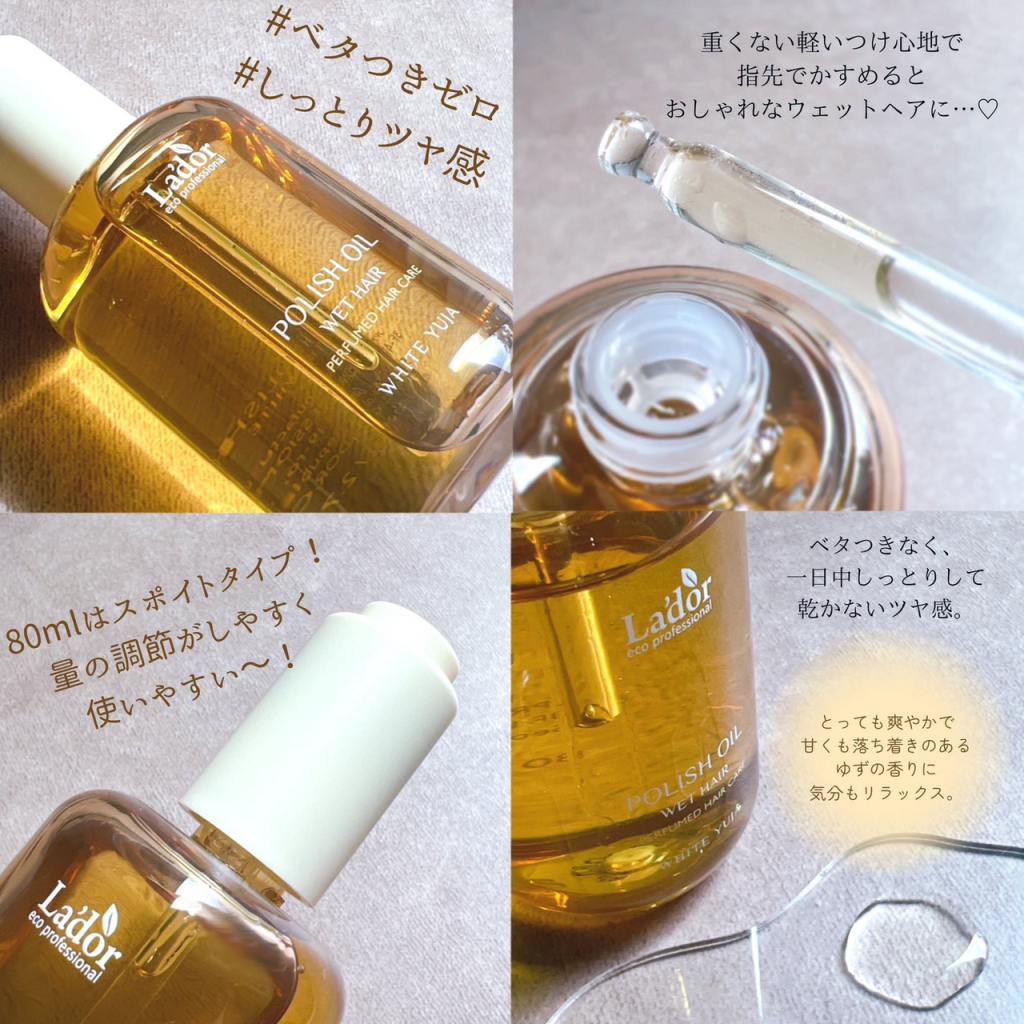 さわやかなゆずの香りも心地よく、リピート使いされる方も多いアイテム。スポイトタイプで量の調整がしやすいため、スタイリングに失敗しにくいのも嬉しいポイント。ベタつかないのにしっとり仕上がります。