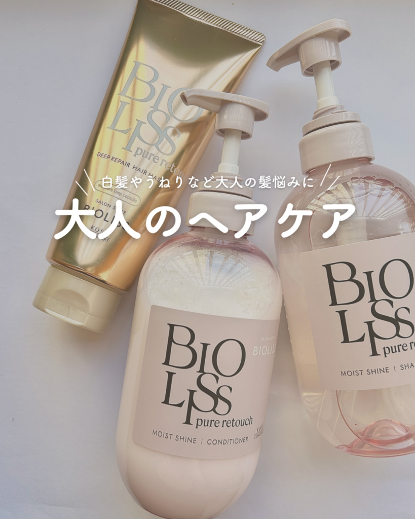 ネーミングが若い子のシャンプーみたいと思うかもしれませんが、実は大人の髪悩みにもぴったりのアイテムです。傷んで切れたり浮いたりした髪を柔らかくほぐして、まとまったハリのある髪へ導きます。