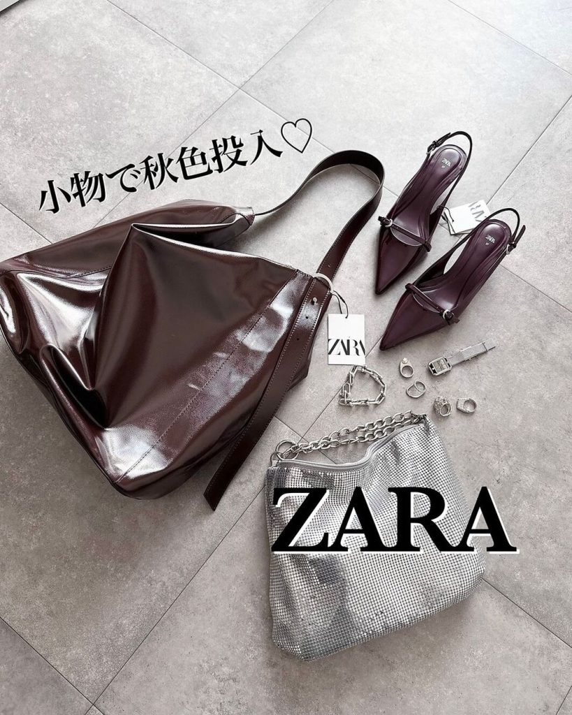 ①ZARA/深みブラウンバッグで秋ムードにチェンジ