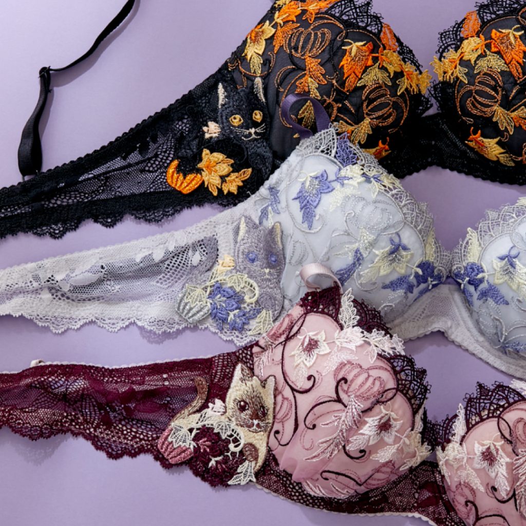 ワコールから生まれた下着ブランド「une nana cool(ウンナナクール)」は今春大好評だった猫柄アイテムの第二弾を9月19日より全国で販売中♡ラメ糸やレースでハロウィン仕様のデザインがされたブラ・ショーツは究極のかわいさですよ。