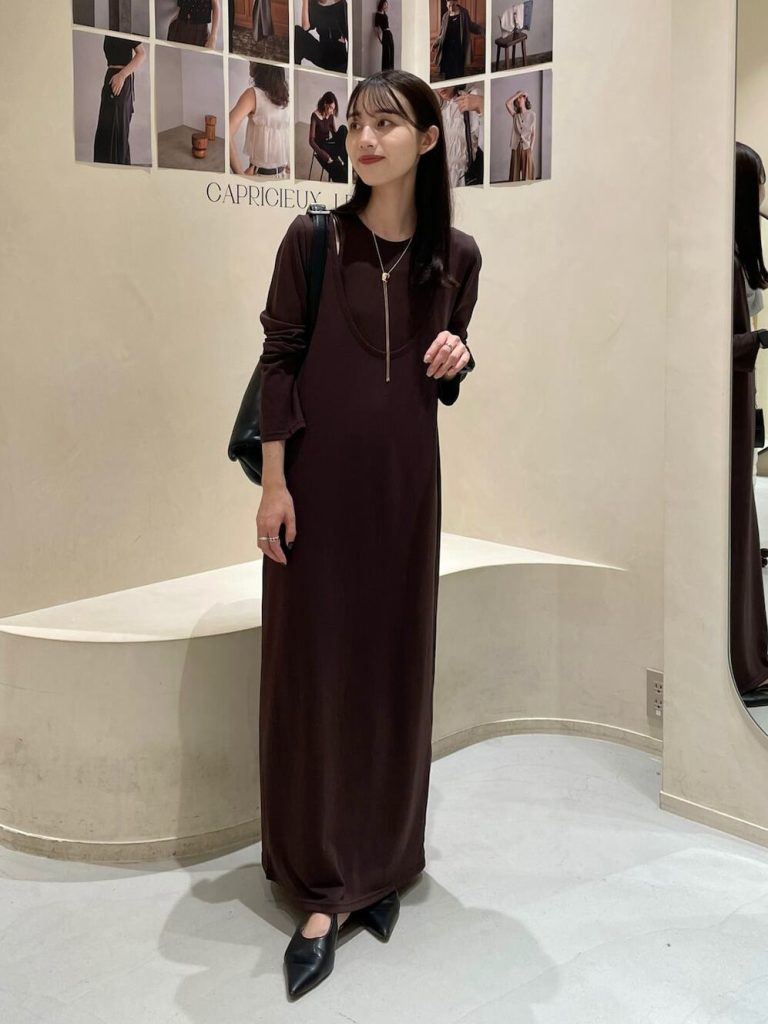 ⑦甘くなりすぎないダークトーンワンピコーデ