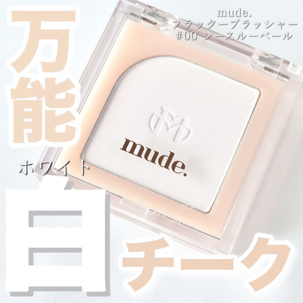 ノンラメ&ノンパールのハイライトなら、mude(ミュード)「フラッターブラッシャー」の00番がおすすめ。ほんのりピンクみを感じるホワイトカラーで、本来はチークベースとして使われます。