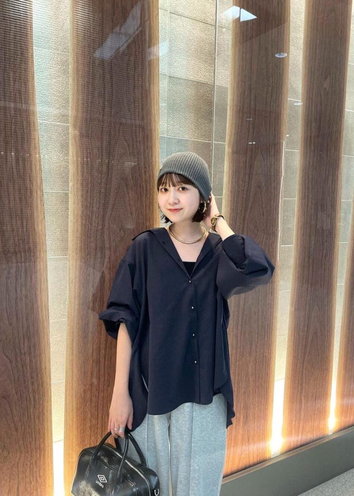 《春夏》薄手のニット×ビーニーコーデ