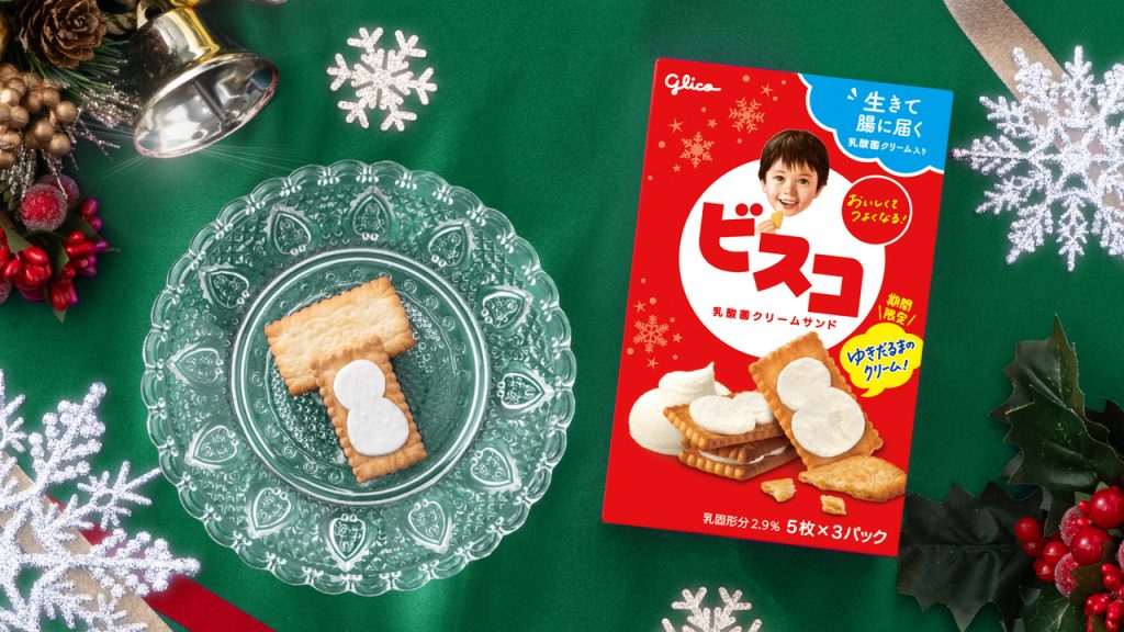 ビスコのビスケットをめくって食べたことはありませんか?この冬のビスコはめくってみるとなんと、クリームが雪だるまの形に!今年4月にハートクリームが発売され、大好評!デザインクリーム第2弾としてゆきだるまクリームが完成しました。
