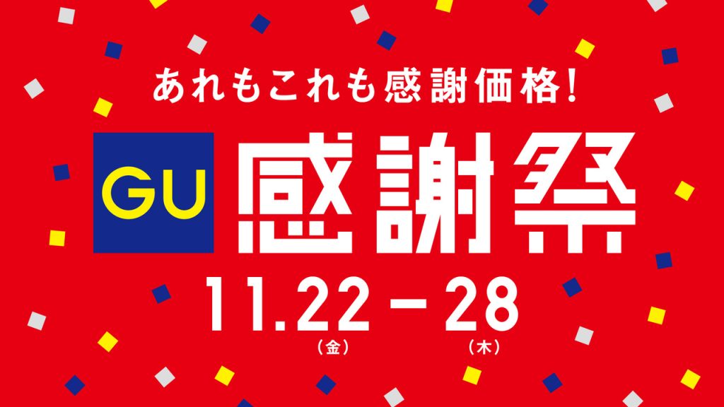毎年人気アイテムがお得に買えると話題のGU感謝祭。今年は、11月22日(金)~11月28日(木)の期間で行われます。夏に比べて単価が上がる冬は、どうしても価格がネックに。でもGU感謝祭なら、いつもよりお得に購入できるだけではなく、クーポンもゲットできますよ。