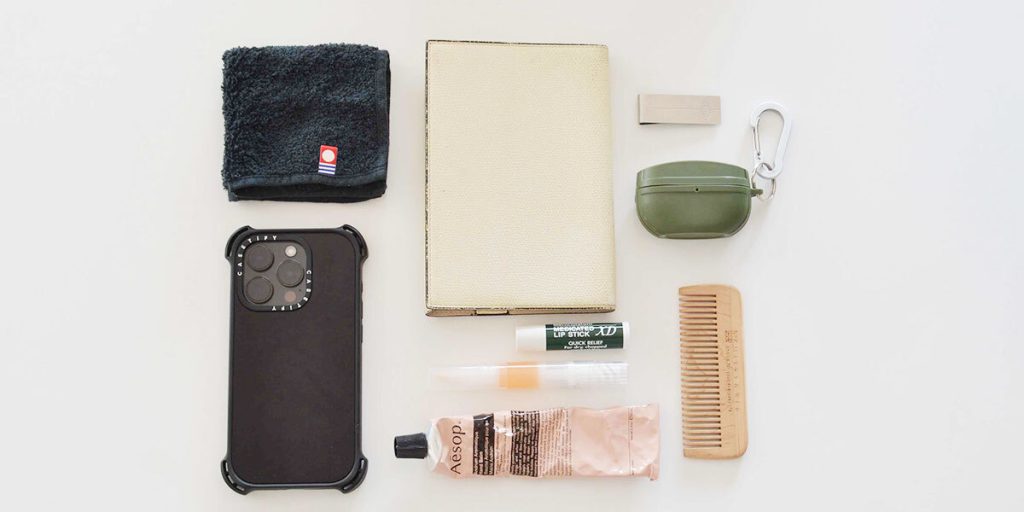 クリーム・ネイルオイルはバッグの中身のマストアイテムです。制作で使う羊毛や糸はとても繊細なので、少しでも手荒れしていると引っかかり、素材や作品がダメになってしまうことも。そのため、手の保湿にはとても気を使っています。「Aesop」と「無印良品」のネイルオイルも長年愛用しているアイテムです。
