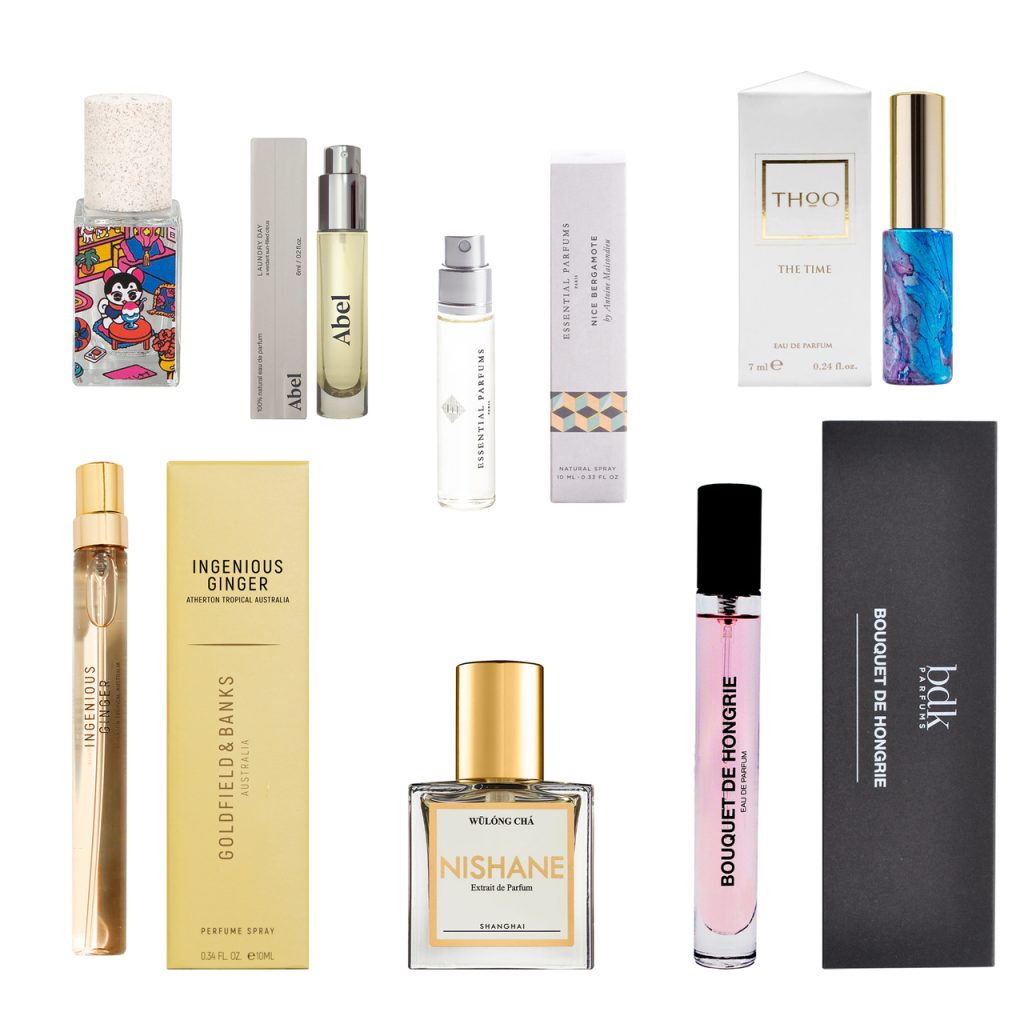 内容|Nishane ウーロンチャ(15ml)、Abel ランドリー デイ(6ml)、Bdk Parfums ブーケドゥオングリー(10ml)、Essential Parfums ナイス ベルガモット(10ml)、Goldfield & Banks インジーニアス ジンジャー(10ml)、 Maison Matine あらしのうみ(15ml)、Thoo ザタイム(7ml)計7種