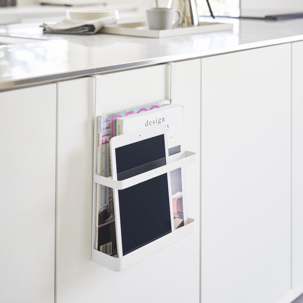 山崎実業(Yamazaki) 引っ掛け 宿題 & タブレット PC ラック ホワイト W25×D9.4×H35.2cm タワー tower マガジンラック タブレットスタンド 1785