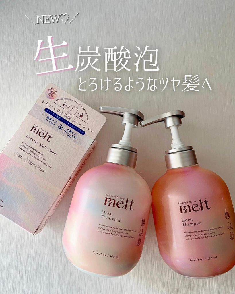 「melt」は、乾燥や摩擦などの髪のダメージ原因に着目。みずみずしくやわらかい、とろけるようなツヤ髪へと導くヘアケアブランドです。シリーズトータルで、音・泡・感触・香りの感覚にはたらきかけ、“休息美容”を体験できるラインナップです。