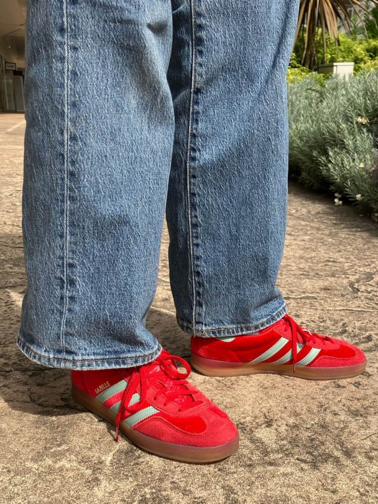 サンバに似ているスニーカーとしてよく名前が上がるのが、こちらのガゼル。サンバはアッパー部分にレザーを使用しているのに対し、ガゼルはスエードやベルベットなど複数の素材を採用。そのため、より大人っぽくきれいめな印象が強くなっています。