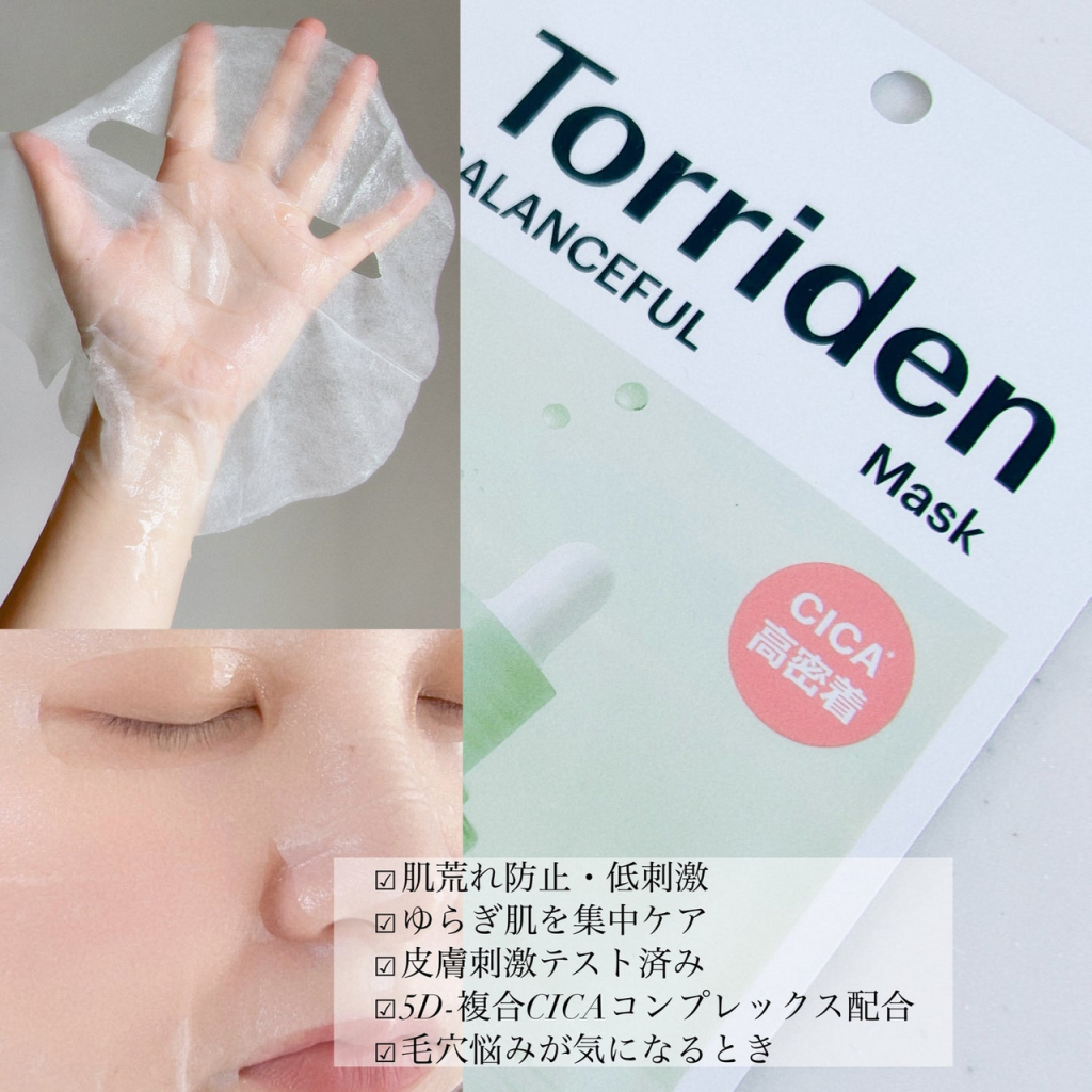 肌に触れた瞬間からやさしくケアする、Torriden(トリデン)のパック。テンセルとバンブーのヴィーガンセルロースシートが、肌に負担なく、隙間なく密着します。さらにたっぷりのエッセンスで密着力アップ!