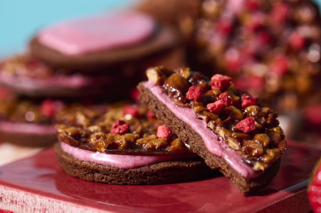 ストロベリーとラズベリーの甘酸っぱさがアクセントになったフロランタンは、ベリーとナッツが絶妙なバランス。さらに華やかなカラーのベリーチョコレートとシュトロイゼルが重なり、ハーモニーを生み出します。