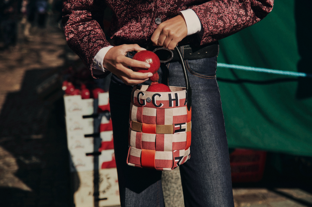 サイズ、税込価格: H22×W13.5×D13.5cm(バケットバッグXS)¥91,300 素材/カラー展開: ポリエステル、ポリアミド(一部カウハイド)/アーティチョーク&ビートルート、ルート&バーク、セダー&ウォルナット、ネイビー&サンダーストーム、ジンジャー&ブラック