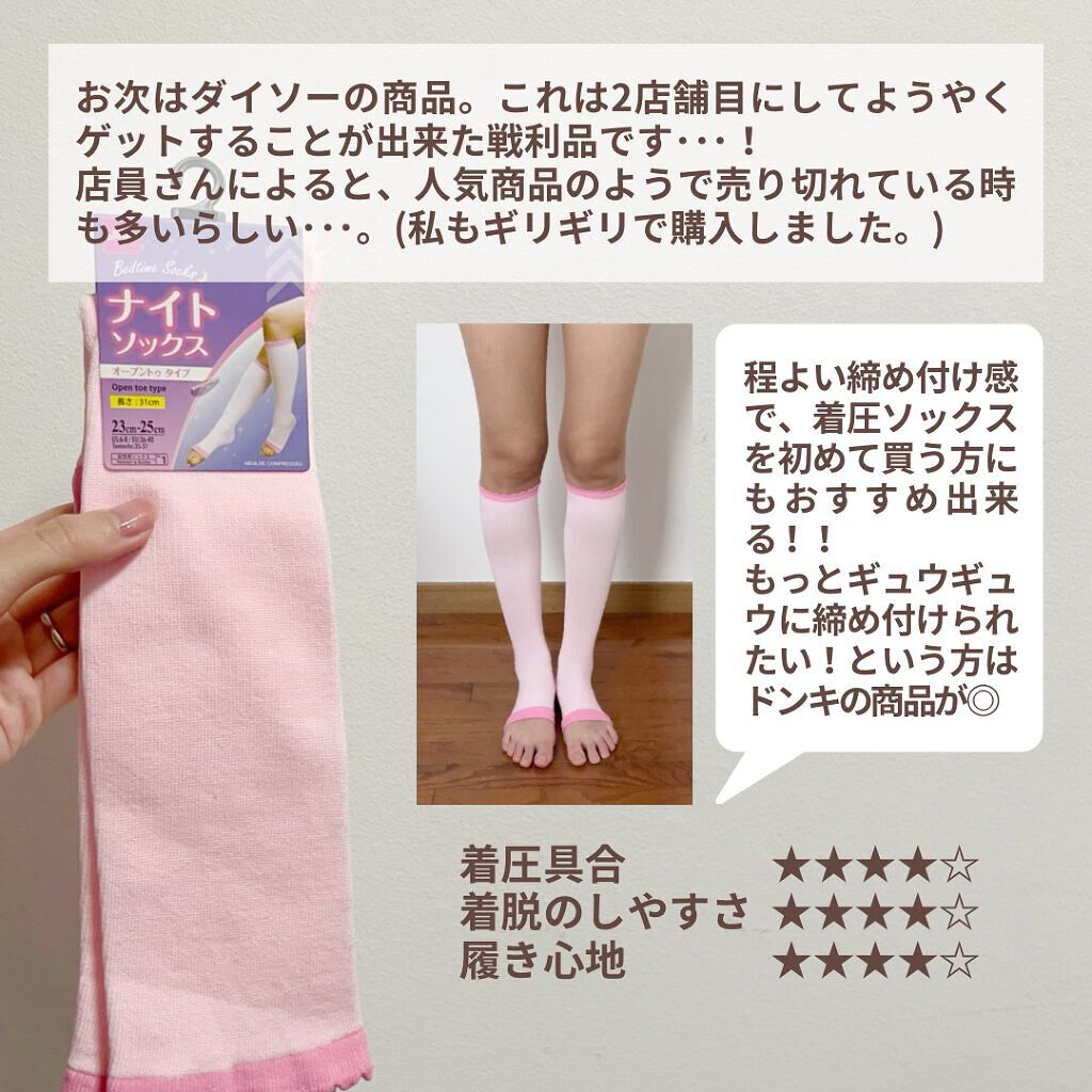 使ってみたら朝の足のすっきり感が違う😭😭 感動しました、、、 100円でこの着圧感、すっきり感は天才。(20代)
