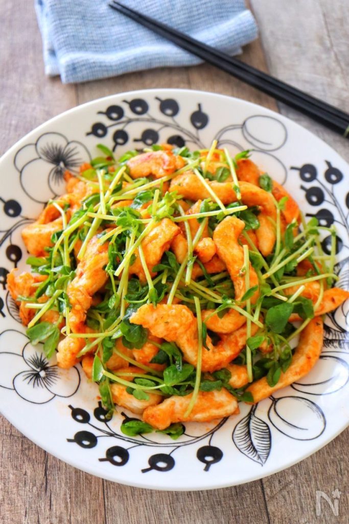 子供が喜ぶ洋風の節約おかずを作りたいときにおすすめのレシピ。鶏むね肉と豆苗だけでぱぱっと調理できて、にんにく風味のオーロラソースがきれいに映えます。ボリューム満点で、冷蔵で2~3日ほど保存可能です。