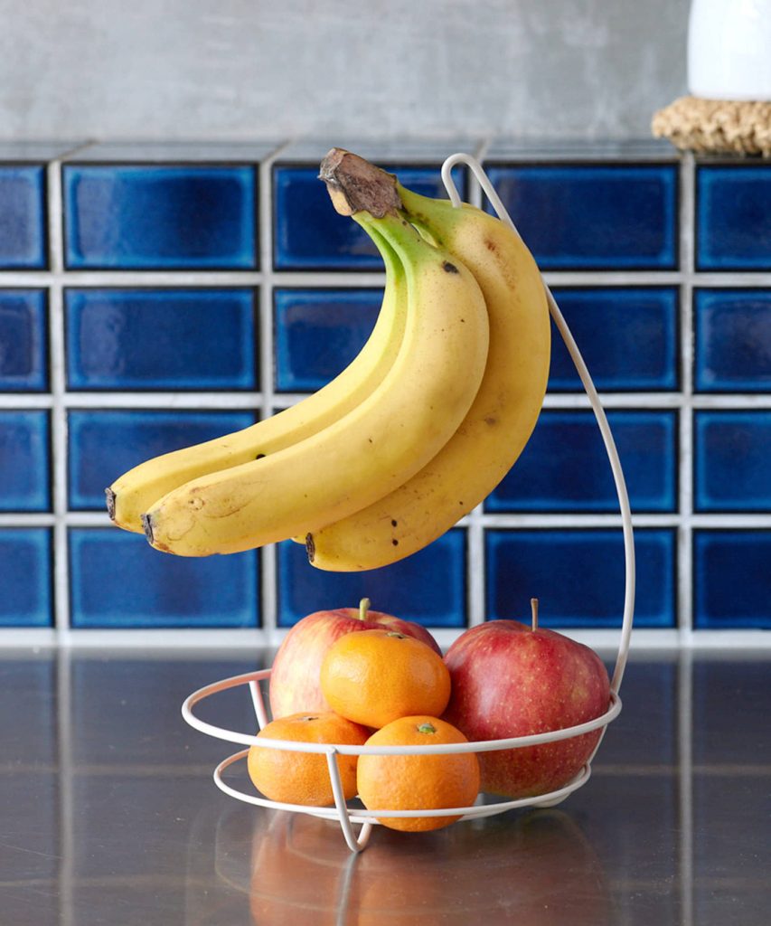 シンプルなデザインとアイボリーがおしゃれで、ナチュラル系や北欧系などどんなキッチンにもなじみますよ。バスケットがあるため安定感があり、バナナが倒れにくいのもポイント◎
