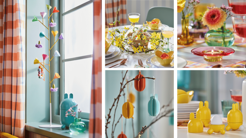 春の訪れとイースターを祝う商品を集めた「TJÄRLEK/シャーレク」は、遊び心のあるデザインとさわやかな模様、明るい色合いが特徴のコレクション。小物やグラスなど、春のテーブルを彩るアイテムが充実しています。