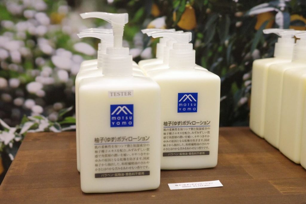 たとえば松山油脂の「Mマークシリーズ」で展開されている「柚子(ゆず)ボディローション」では天然の柚子由来の精油を使用していますが、さらに精油を抽出した後の柚子はジュースやお酒となるなど、最後の最後まで製品に活かされています。