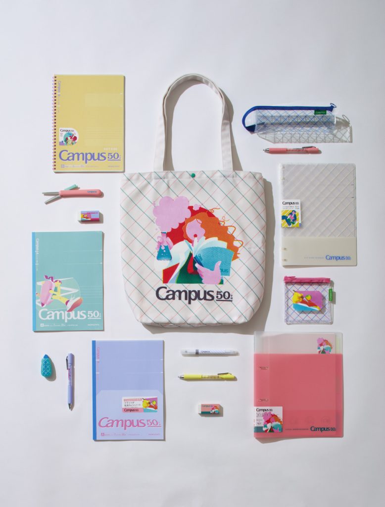 1975年発売以降、多くの人に支持され続けるキャンパスノートの50周年を祝う限定アイテムが2月12日より販売中です。一乗ひかる氏描き下ろしのイラストは、大胆な色彩表現でエネルギーを与えてくれます。