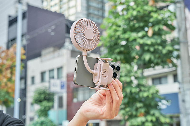 スマホとファンを同時に使うと両手がふさがる…。そんな悩みを解決してくれるのが、片手でスマホを見ながら涼める新作の「クリップファン」です。超薄型ボディーで持ち運びも楽々。日傘や鞄など、挟みたいところにどこでも挟めます。