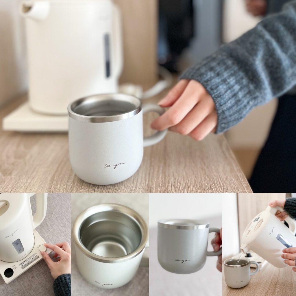 2024年10月に発売され、温活を意識している方たちからの注目を集めています。「白湯モード」「白湯予約モード」「加熱モード」に切り替えることができ、白湯習慣がぐっとスマートに。もちろん通常の電気ケトルとしての使用も可能です。マグカップ同様、シンプルでインテリアに馴染むデザインも人気の秘訣。マグカップと組み合わせて使うことで、よりスムーズな白湯生活を送ることができそうです。