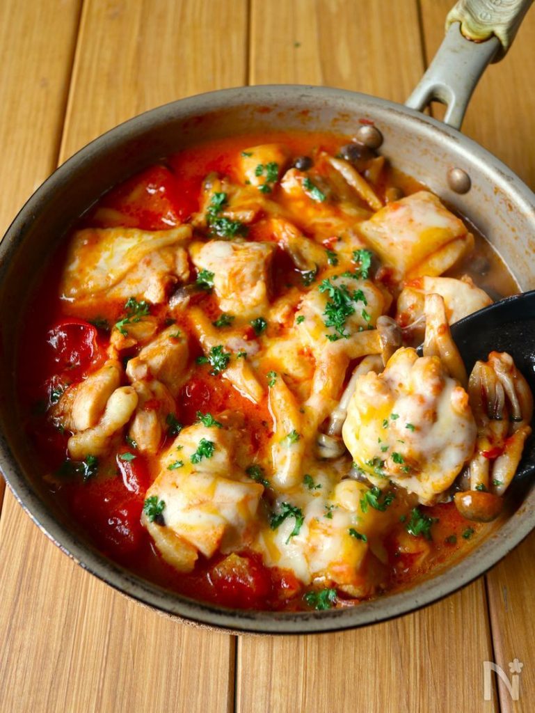 ワンパン10分【鶏肉トマトチーズ煮】とろ~りチーズで絶品♩ | レシピサイトNadia