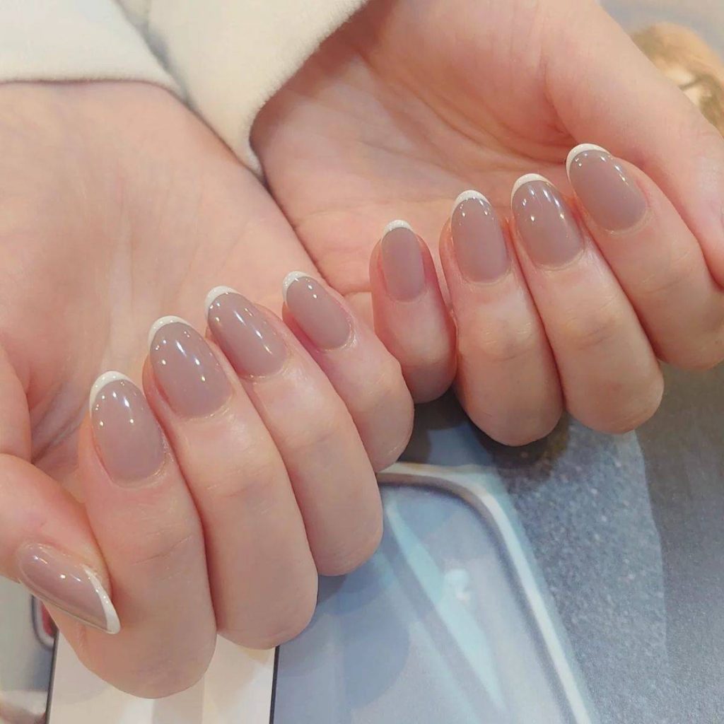 【3月編】肌馴染み抜群のネイル⑤グレージュ×ホワイトの細フレンチ