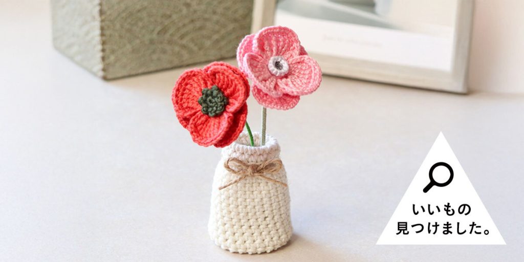 だれかにおしえたい。見てほしい。そんな作品を見つけてご紹介する『いいもの見つけました。』。今回は、お部屋に手芸作品ならではの温かみをプラスしてくれる、かぎ編みのお花インテリアをご紹介します。
