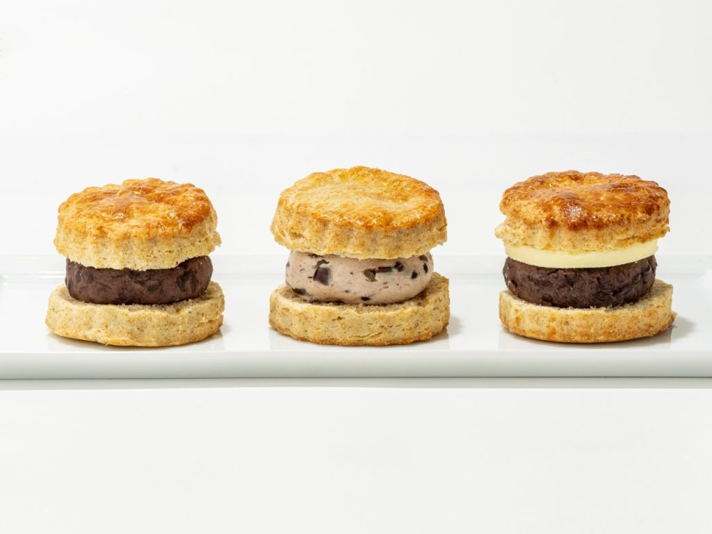 スナック専門店のアン アンド アン。全粒粉と天然塩を使用し、プチプチとした食感の生地に、老舗製餡所こだわりのあんこを挟んだスコーンが人気です。味は3種。コーヒーやお酒にも合い、男性からも人気が高いです。
