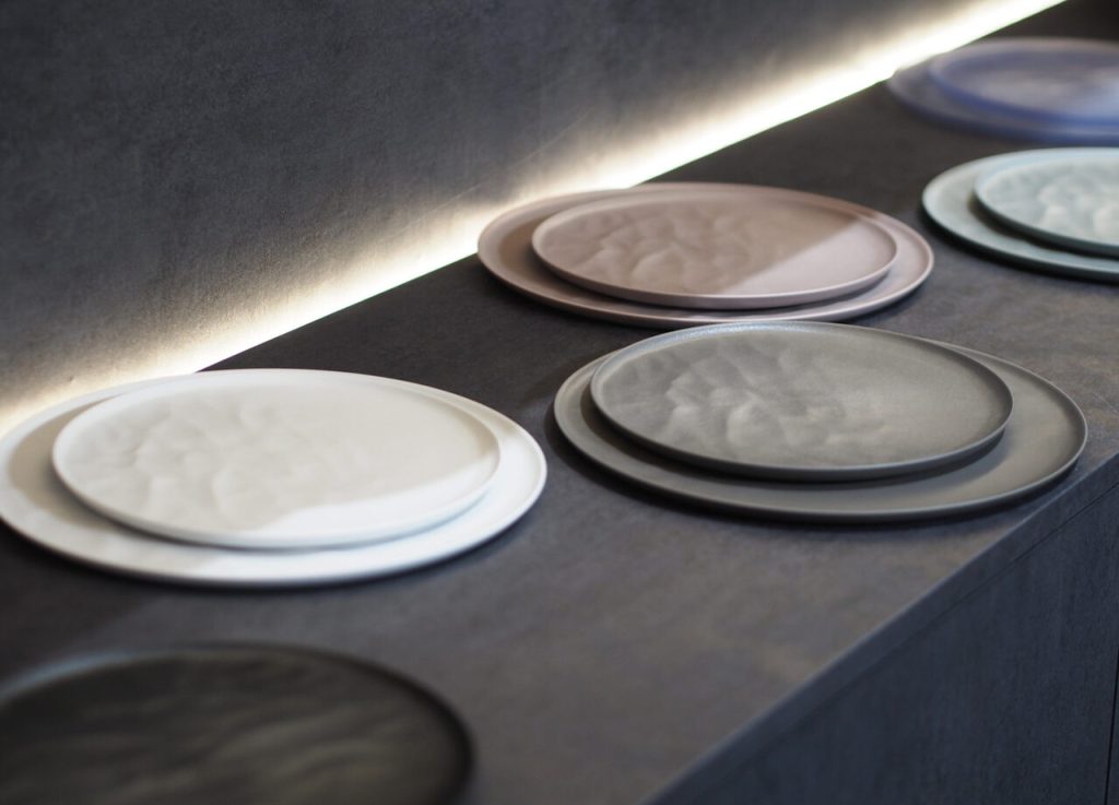 プロ用の器として陶磁器という素材と向き合ってきたからこそ、「普段づかいの器には新たな選択肢がつくれるのでは」と思い、そこに樹脂の可能性を感じたという上町さんと柳井さん。