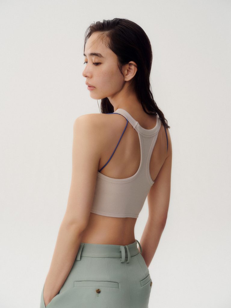 「アメリカンスリーブブラトップ」はバイカラーのストラップとクロップド丈がポイントの商品です。コンパクトながらも伸びのいい生地で快適に過ごせます。大胆なカッティングでヘルシーな印象です。
