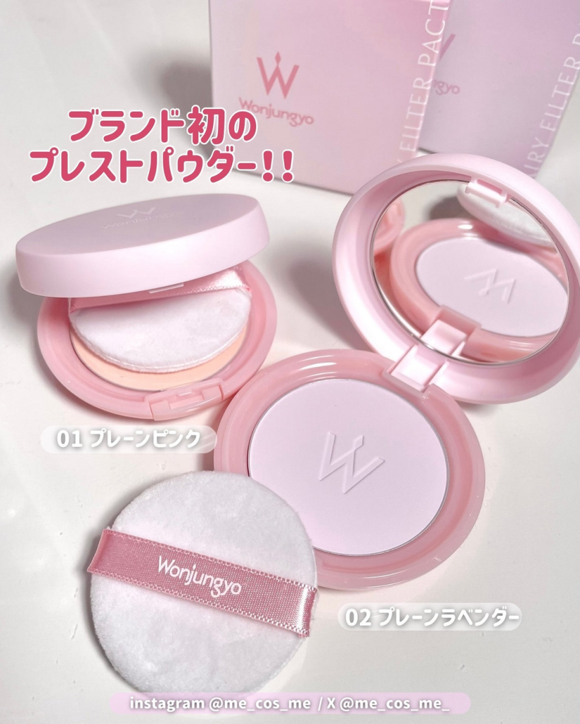 フィルターをかけたような陶器肌を叶える、Wonjungyo(ウォンジョンヨ)のお直しプレストパウダー。ミラーとパフ付きのコンパクトです。