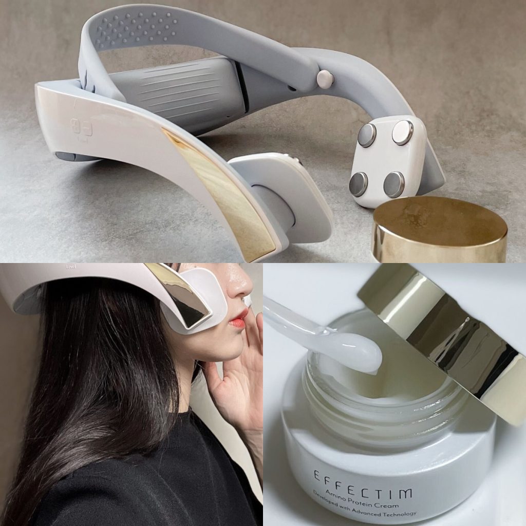 「エフィクティム」は、資生堂の先端皮膚科学研究に基づき、美容機器の物理エネルギーと化粧品の生命科学エネルギーを組み合わせたエイジングケア*1ブランド。今回新たに発売される『エフェクティム クイック フェイシャル トレーナー』は、“ながら美容”に最適な、ヘッドセット型の美顔器です。新技術の「干渉波EMS」を搭載することで、肌表面の痛みやピリつきを軽減しながら、心地良く表情筋を刺激します。また、美顔器と一緒に使いたい『エフェクティム アミノプロテイン クリーム』も同時発売。真珠タンパク・アミノ酸・グリセリンなどを新配合したアミノプロテインコンプレックス*2が配合された、若々しい肌へと導くクリームです。