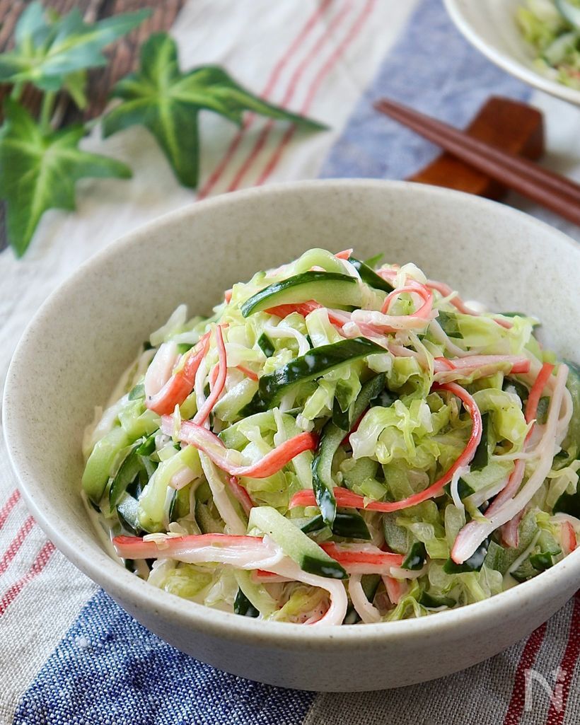 超シンプル♪細切りきゅうりとキャベツのカニカママヨサラダ | レシピサイトNadia