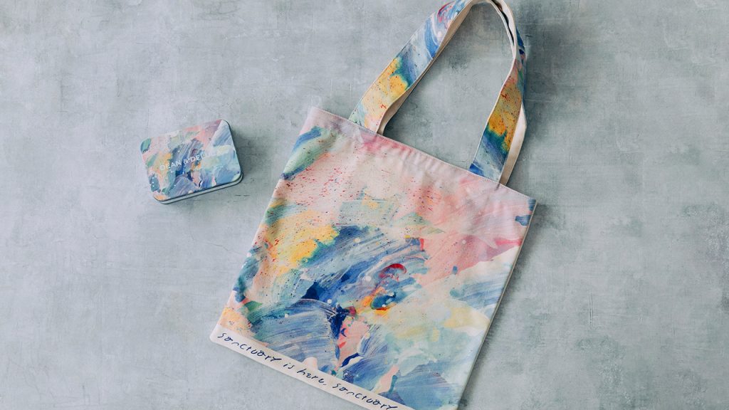 展示会期:開催中〜6月9日(月)まで 開催店舗:DEAN & DELUCA たまプラーザ *6月1日(日)10〜15時大岡氏在廊予定。 *たまプラーザ店のみ「Sanctuary is here トートバッグ」と「クッキー缶」を先行発売いたします。 6月1日(日)10時〜よりたまプラーザ店限定にて、「Sanctuary is here トートバッグ」と「クッキー缶」を先行販売いたします。また「Sanctuary is here トートバッグ」と「クッキー缶」を併せてご購入いただいた方のうち、先着50名様に限り、通常のトートバッグの代わりに大岡氏が金彩を施した特別仕様のトートバッグをお買い上げいただけます。