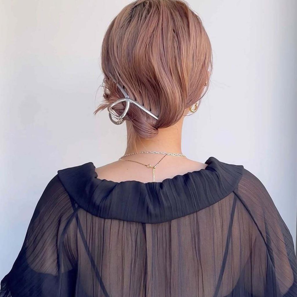 後れ毛なくすっきりまとまる、上品なまとめ髪アレンジ。ゴムで土台を作ってからクリップで留めるので、髪が多い方や「うまく留められない…」という不器用さんにもおすすめです。しっかり固定されるのに抜け感はしっかりキープ。大ぶりクリップを使えばアクセントにもなって、簡単なのにこなれ感たっぷりの仕上がりに。