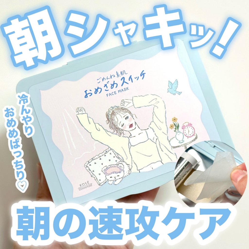 豊富なフェイスマスク展開で人気の「ごめんね素肌」シリーズからは、朝にぴったりの「おめざめスイッチマスク」をご紹介。