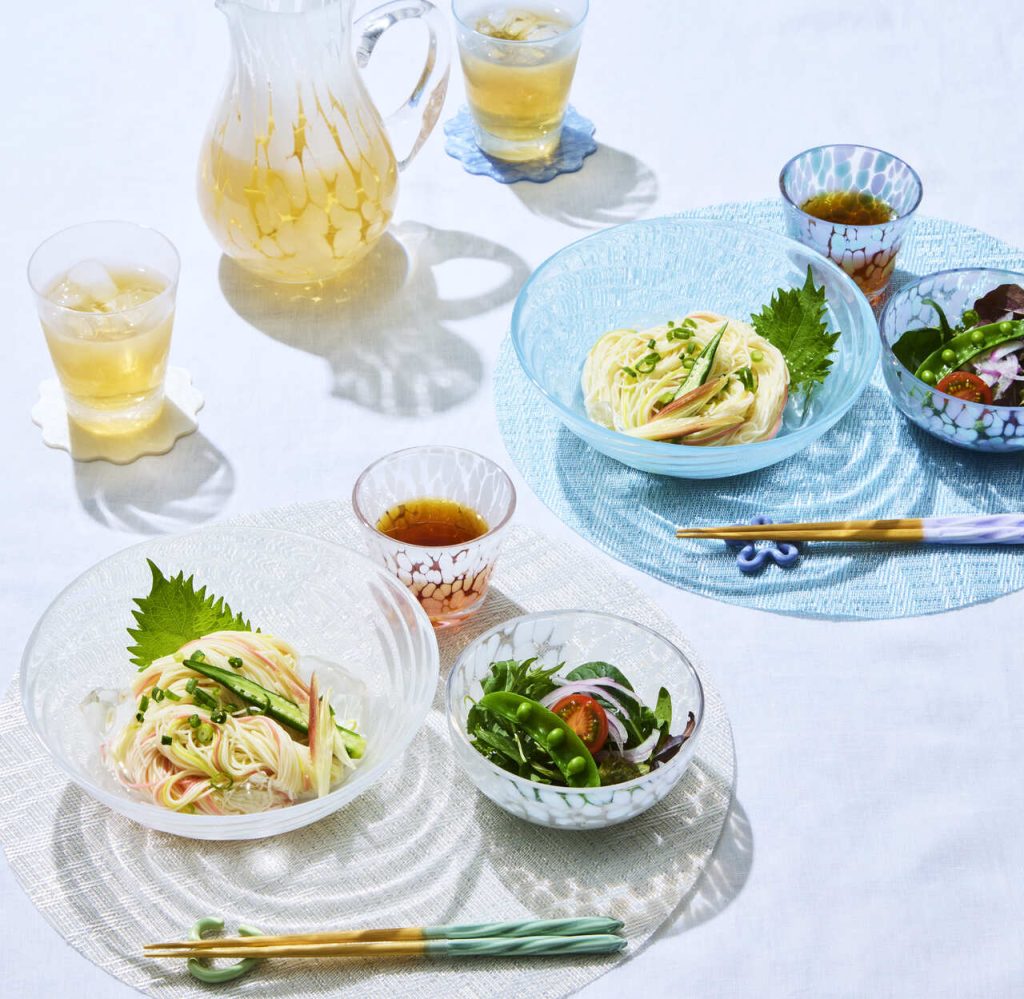 そうめんや夏野菜を涼しげに彩るガラス食器