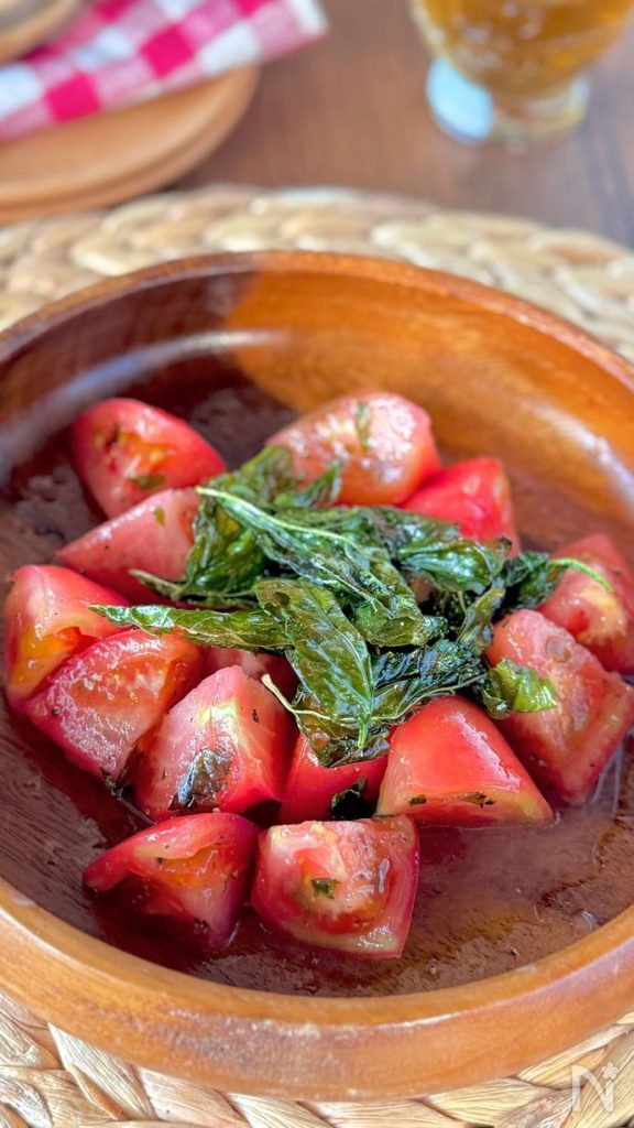 パリッと新食感!トマトと素揚げバジルのハニーレモンサラダ | レシピサイトNadia