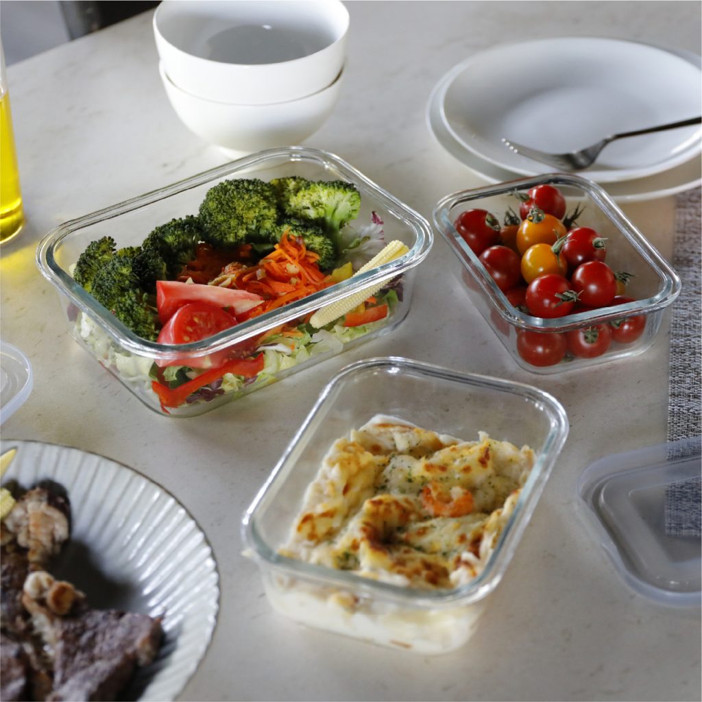 保存容器のままテーブルに並べても見栄えが良いところも◎。盛りつけ直しが不要だから献立準備の時短にもなり、洗い物も減らせます。ガラスの透明感が料理を美しく引き立ててくれますよ。
