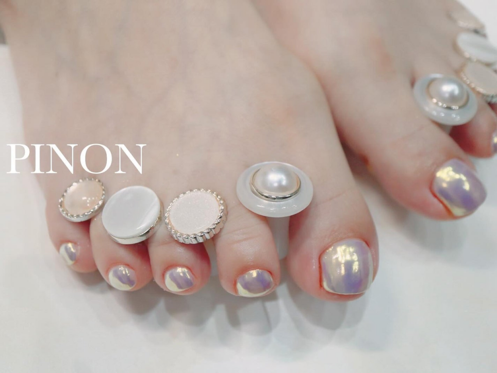 フットネイルも肌馴染みの良いカラーが好き!そんな方には、偏光パールやラメで色々な雰囲気を味わえるカラーを推します。サンダルコーデにも負けない存在感を放ってくれ、光の加減でムードが変わるのも気分が上がります。