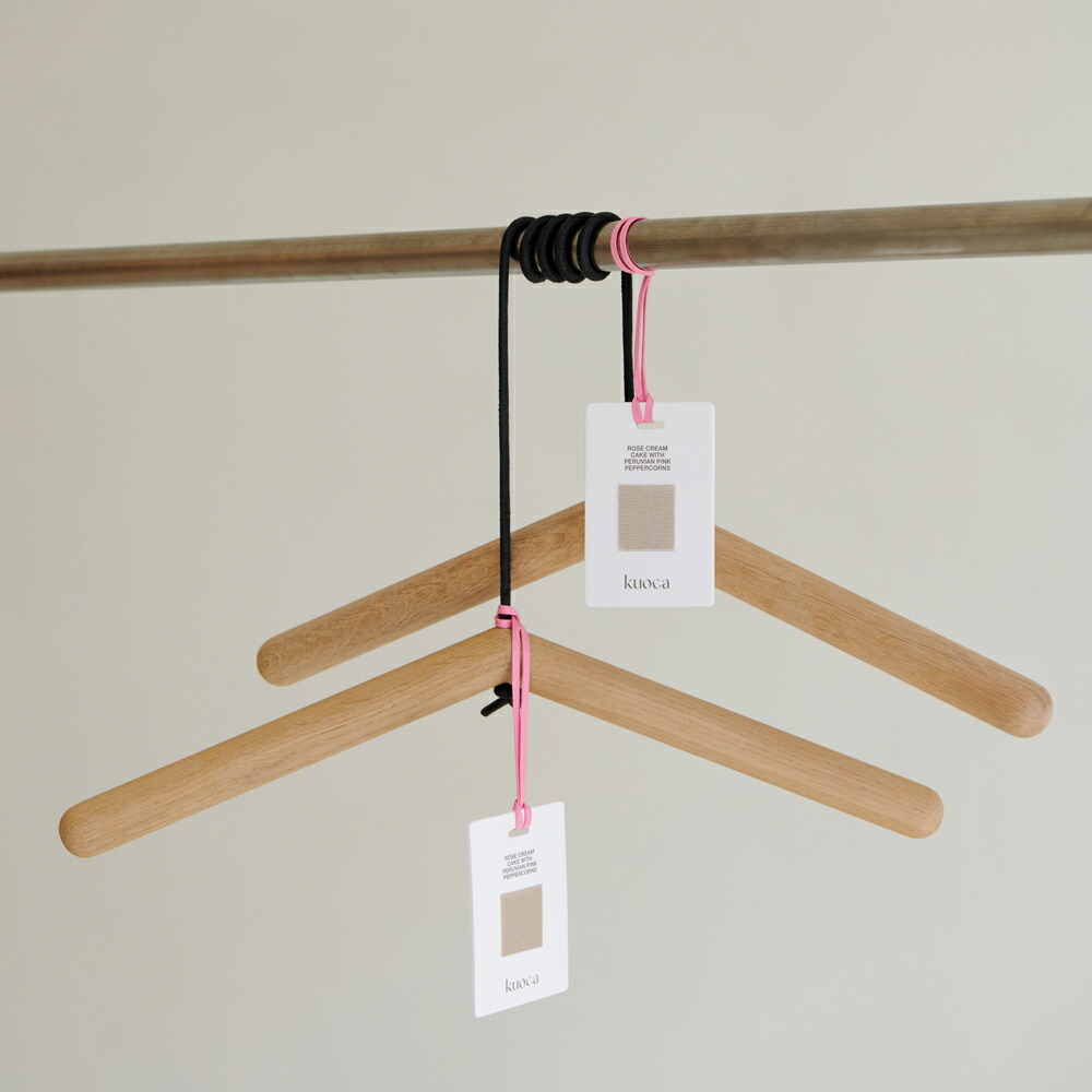 ハンガーに掛けられているのは、ファッションブランドのタグ?いいえ、実は、いい香りのするタグなんです。クローゼットや水回り、玄関などニオイが気になる場所にかけるだけで、空間にいい香りを運びます。