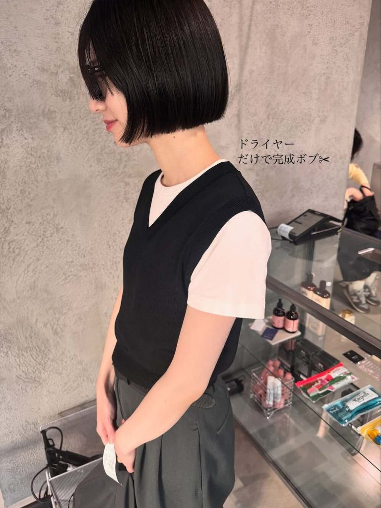 ⑦乾かすだけでキマる。ミニマル美人な黒髪ストレートボブ