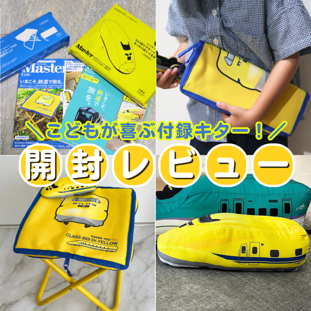 「MonoMaster」2025年9月号から、引退した923形ドクターイエロー・T4の付録が登場しました。通常号の「もっちりぬいぐるみクッション」と増刊号の「しっかり座れる携帯チェア」は、子どもも喜ぶデザイン。夏のお出かけでも重宝するドクターイエローグッズをロカリ編集部がレビューしていきます。