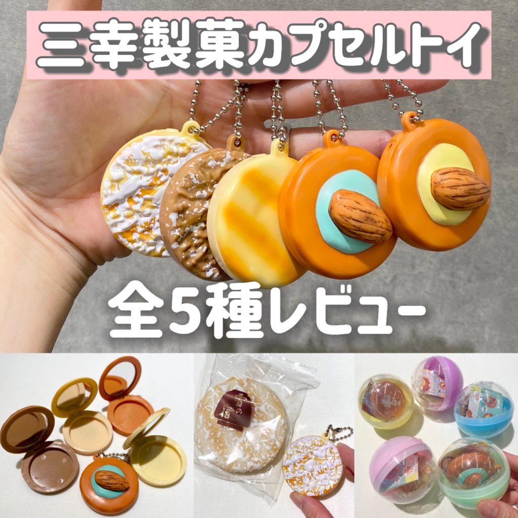 「雪の宿」「ぱりんこ」「チーズアーモンド」がミニチュアになってカプセルトイになりました!お菓子の形をしたコンパクトミラーは、思わず全種類集めたくなるかわいさ。今回は全5種を揃えて、その魅力をレビューしていきます♡