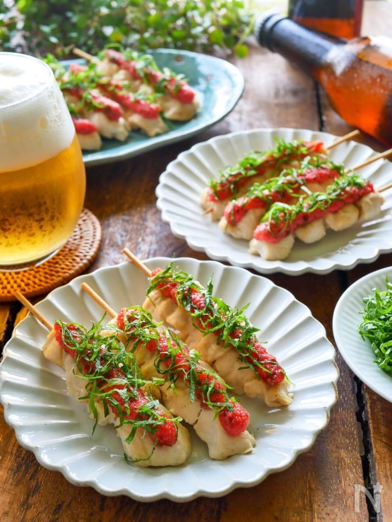 夏を盛り上げる!【しっとりササミ串】スッキリ梅昆布めんたい味 | レシピサイトNadia