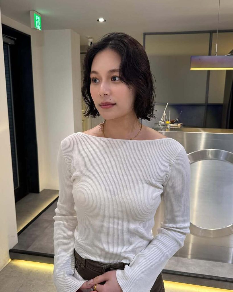 顎より少し上で切り揃えたミニボブに、やわらかなパーマをかけることで大人らしい品と可愛らしさを両立。シンプルなシルエットながら、毛先がふわっと動くことで女性らしい華やかさが加わります。コンパクトにまとまるフォルムが首元をすっきりと見せてくれますよ。モードにもフェミニンにも寄せやすい、今どきバランスの万能スタイルです。