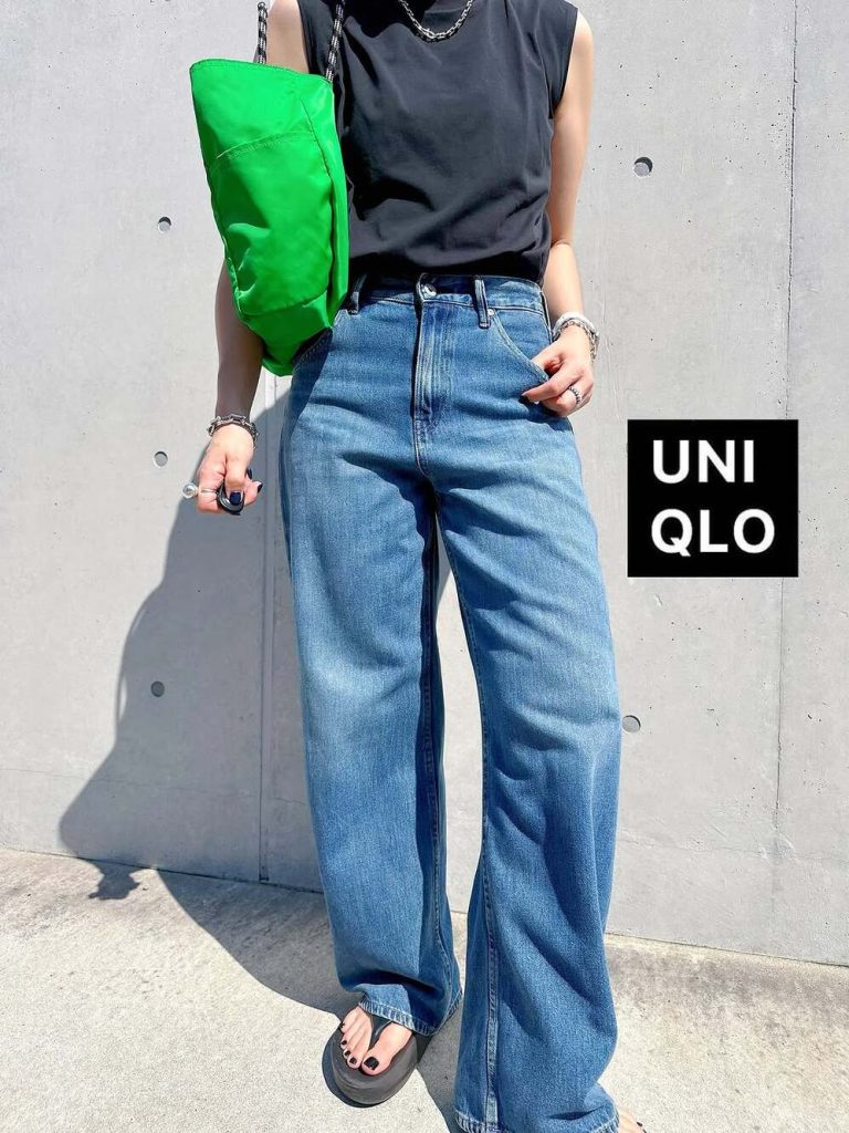 ただいまユニクロで一番バズっているといっても過言ではないのが、独特なシルエットのジーンズ。ゆとりがあるのでどんな体型でもはきこなせて、すらりと美脚に見えると評判です。