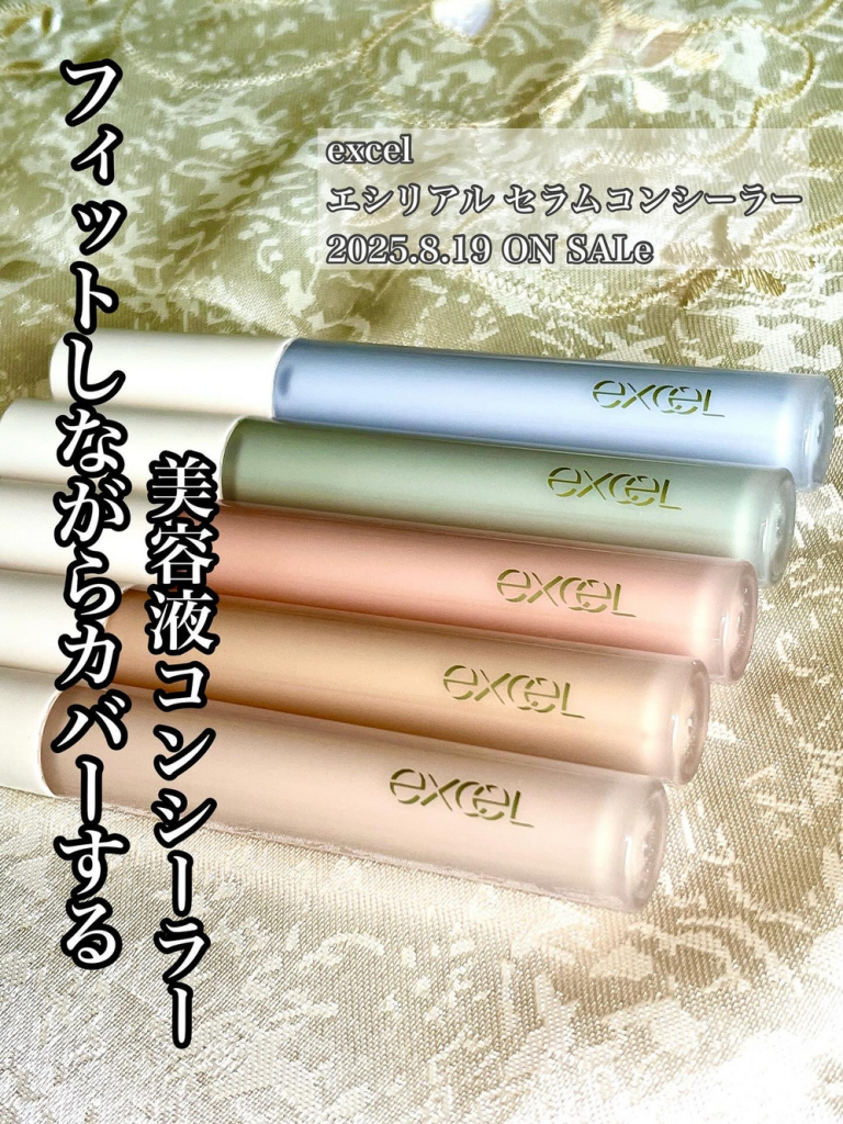 「エクセル」の秋の新作は、テクニックいらずでベースメイクを格上げする優秀アイテムです。今回は8月19日(火)に同日発売された、塗りやすさを追求した「コンシーラーブラシ」と、肌悩みに合ったカラーが選べる「エシリアル セラムコンシーラー」の魅力をお伝えします。